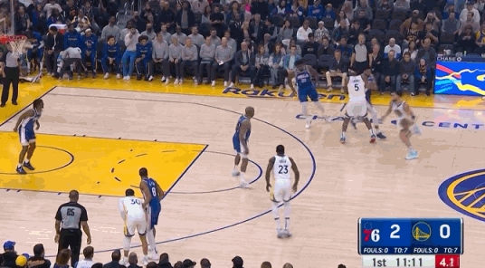 易边再战,库里上篮得分,哈里斯回敬三分,恩比德上篮得手,汤普森领到技犯,马克西、库里互飙三分,双方战平。恩比德、梅尔顿连续得分,汤普森连中两记三分,库里上篮得分。恩比德连得4分,普尔打成3+1,米尔顿、科尔克马兹连续得分,马克西三分命中,76人一波12-1反超9分。恩比德得分突破30分,三节战罢,76人88-79领先勇士。