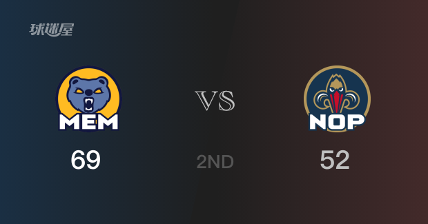 半场数据,灰熊以69-52领先鹈鹕17分。