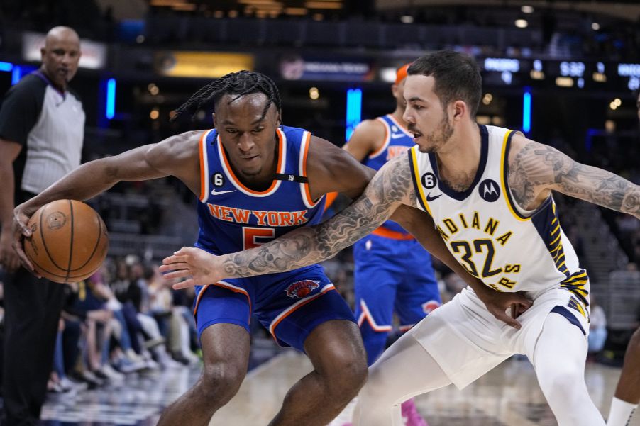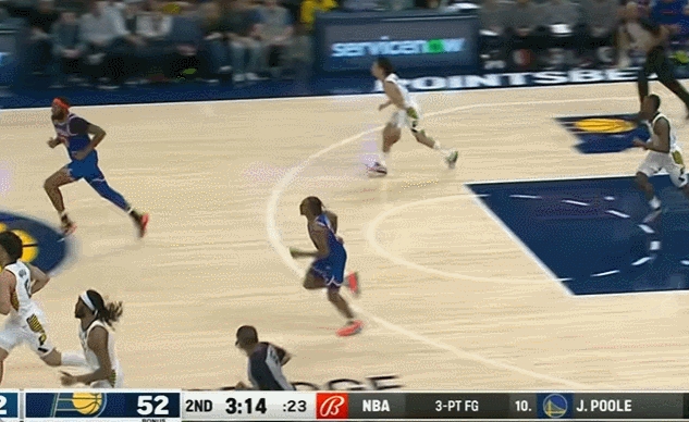 次节上来步行者延续首节末段的状态,分差在节初迅速被追至44平,此后步行者再度哑火,尼克斯打出8-0攻击波建立优势,好在节末步行者找回状态,内外开花不断缩小分差,在第二节还剩44秒时,步行者将比分追至65平,凭借托平的三分,半场战罢,尼克斯70-67领先步行者3分。