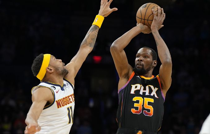 如今面对与残阵掘金对决,双方很可能在西部半决赛碰上,全主力太阳却打得并不轻松,全场被掘金紧咬比分。不过杜兰特的个人状态不俗,他开局就命中三分,帮助太阳维持微弱领先优势。只是上半场杜兰特10中4准星欠佳,其中三分5中2,得到11分5篮板2助攻,而太阳上半场仅领先掘金1分。
