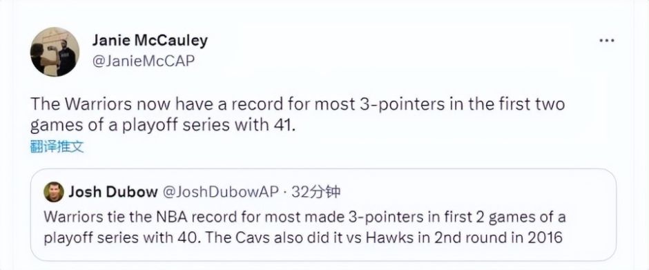 勇士创造了神迹,西部半决赛前两战已经投进42记三分球,创造了系列赛前两场三分命中数纪录。