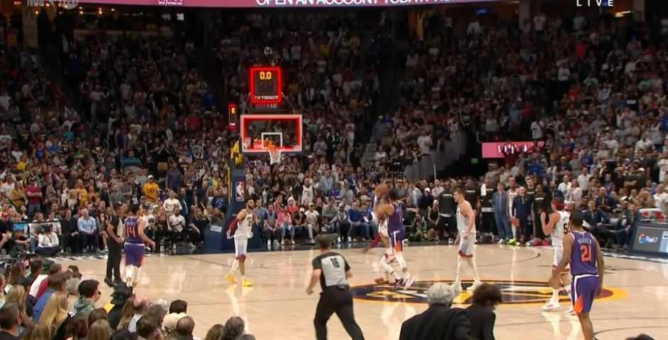 布克半场超远打板三分命中,但超时无效极为遗憾。