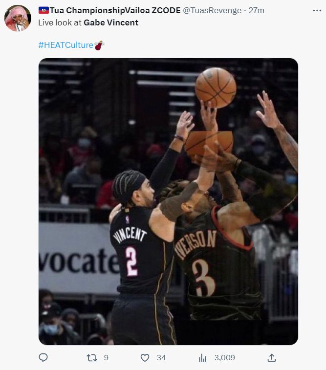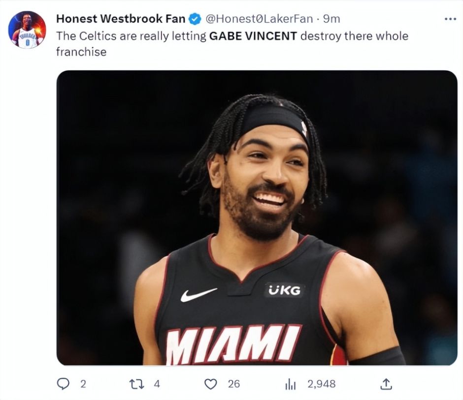 热火球迷写道:看文森特打球就像看到了艾弗森。
