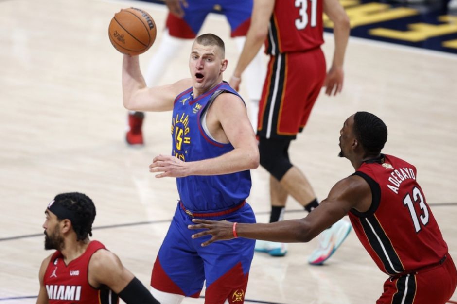 末节,热火开场打出11-0的攻势将分差缩小到10分,约基奇助攻后又造犯规稳定战局,波特助攻约基奇得手后热巴后仰跳投回应,穆雷单打巴特勒再中,文森特上下步得手,马龙换下约基奇休息。约基奇登场后立马中距离得手,随后单打阿德巴约后仰又拉开到14分,海史密斯连拿5分缩小到9分,约基奇再度命中后热火放弃比赛。