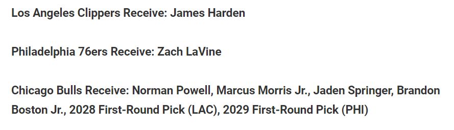 公牛得到:小莫里斯+鲍威尔+杰登-斯普林格+小布兰登波士顿+2028年首轮签+2029年。