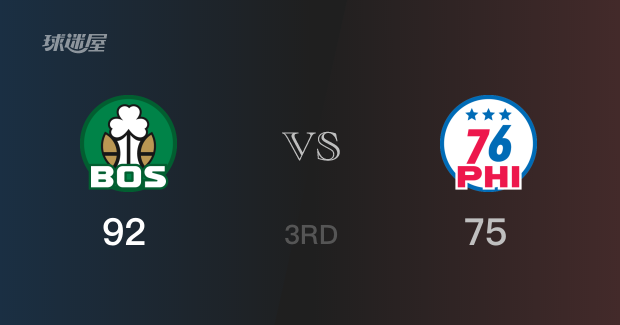 三节结束,凯尔特人以92-75领先76人17分。