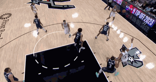 文班亚马三分命中,这也是他的马刺常规赛生涯首球!