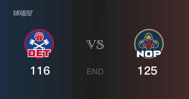 全场比赛结束,最终鹈鹕以125-116击败活塞,成为获胜方。鹈鹕球员麦科勒姆砍下全队最高33分,外加4篮板5助攻、瓦兰丘纳斯23分13篮板5助攻3盖帽、琼斯21分5篮板3助攻3抢断4盖帽,他们是鹈鹕队里得分最高的三名球员。