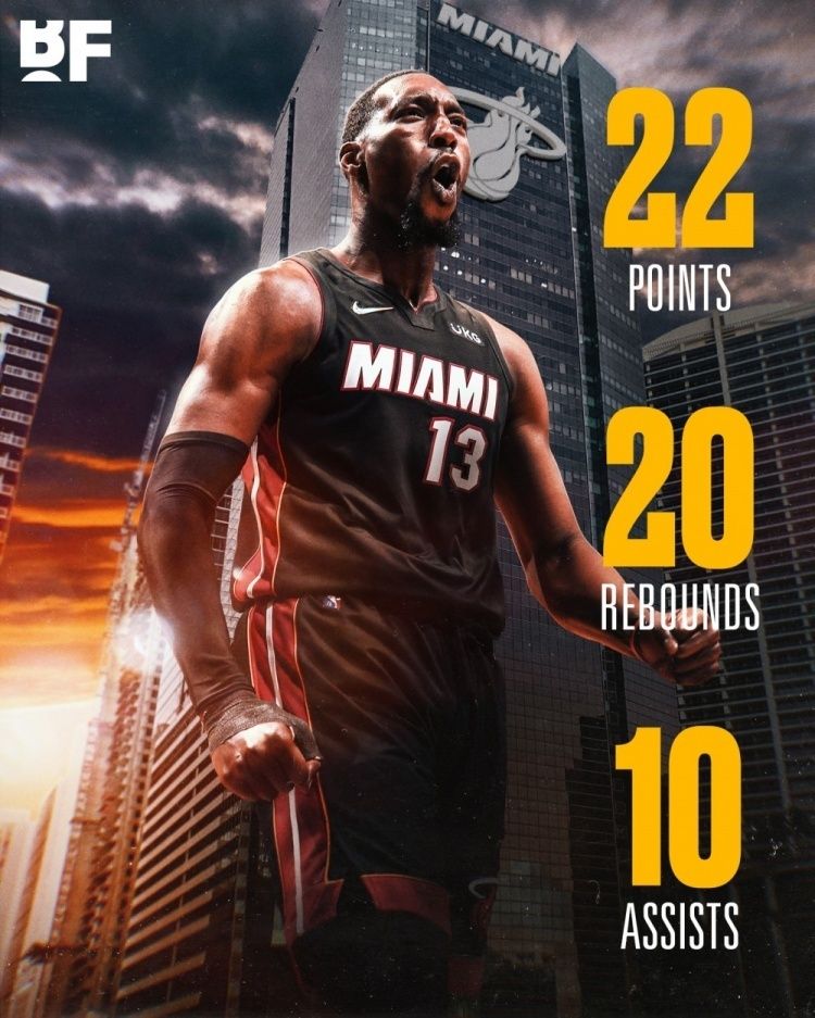 不过热火的最大功臣还是阿德巴约,他20中9得到22分效率一般,却疯狂抢到全场最多的20个篮板,帮助热火篮板44-38净胜6个。阿德巴约还送出10次助攻全场最高,激活热火的团队攻势制胜。