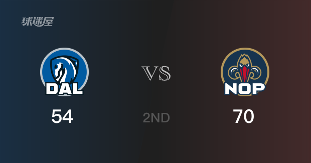 半场比分,鹈鹕以70-54领先独行侠16分。