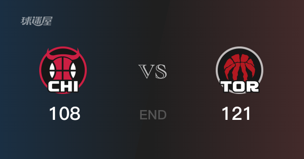 全场比赛结束,最终猛龙以121-108击败公牛,成为获胜方。猛龙球员阿努诺比砍下全队最高26分,外加6篮板3助攻1抢断、西亚卡姆18分3篮板8助攻1抢断、施罗德17分5助攻,他们是猛龙队里得分最高的三名球员。