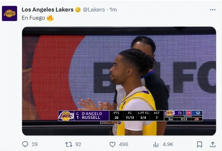 湖人媒体已经开始热议拉塞尔的表现,如果你爱拉塞尔,今夜的拉塞尔就像是艾弗森。
