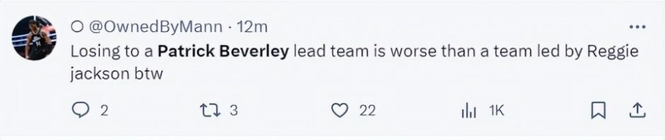 也有球迷表示:输给贝弗利带领的球队比输给雷吉带领的球队还要糟糕。