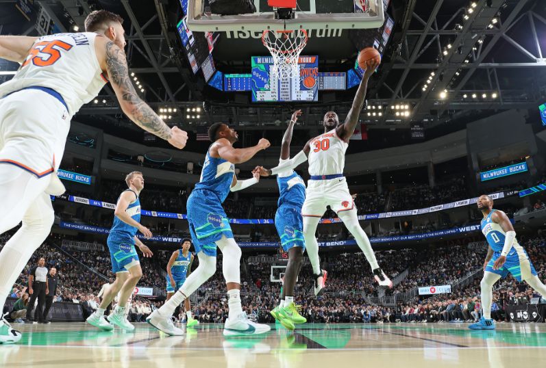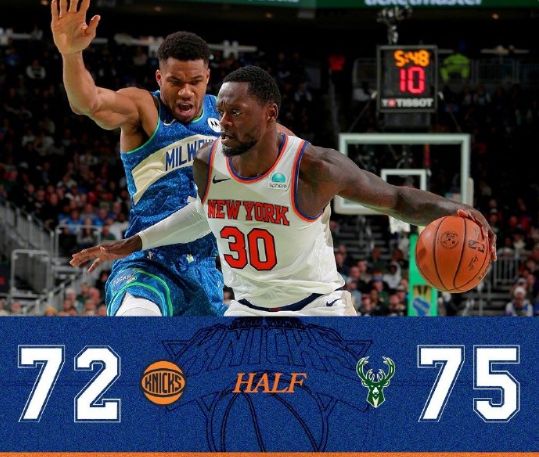 伴随雄鹿加强对于兰德尔的防守限制,他在次节仅获得3次投篮出手,却依然是全部命中,上半场已经高效9中9贡献百分百的准星,其中还有一记外线三分命中。兰德尔次节还博得6次罚球全部命中,他上半场仅出战19分59秒,贡献9中9,其中三分1中1与罚球6中6,狂轰25分3篮板4助攻,率领尼克斯上半场仅以72-75落后雄鹿3分。