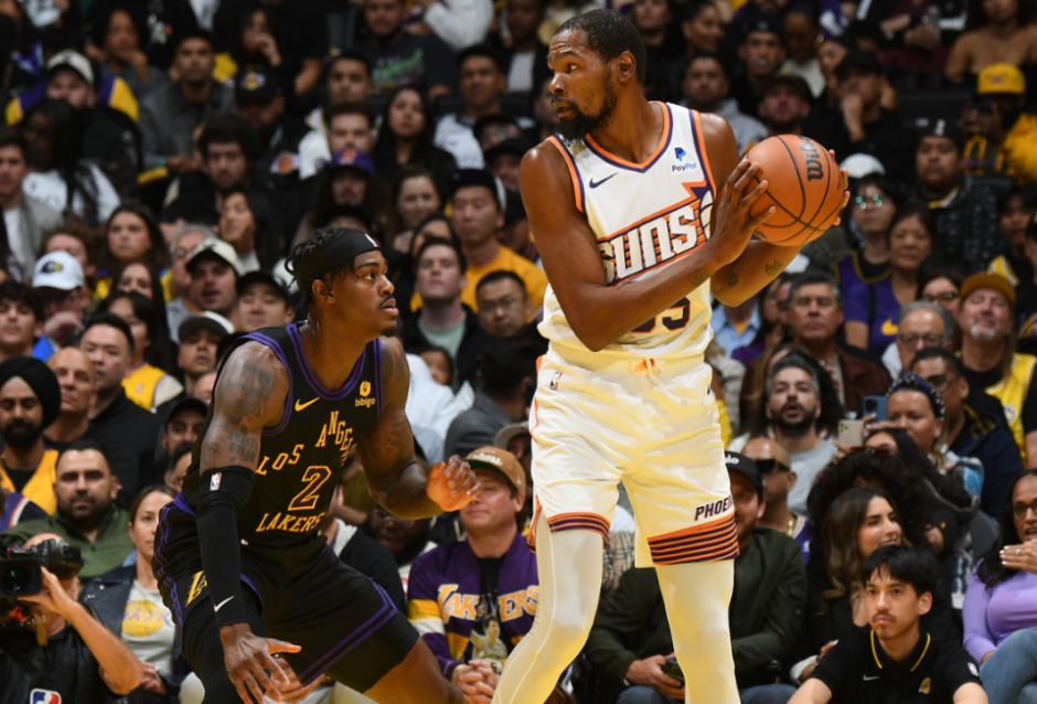 末节,布克三分命中,八村垒扣篮得分,利特尔空接扣篮。詹姆斯连得7分,湖人领先5分。杜兰特撞到膝盖,脚也崴了一下,但还是坚持作战。杜兰特连中两记三分,詹姆斯助攻浓眉得分后,自己又连得6分,杜兰特中投得分,布克上篮得分,太阳只落后1分。里夫斯三分命中,杜兰特再得两分,浓眉两罚一中,杜兰特三分不中,最终,湖人击败太阳。