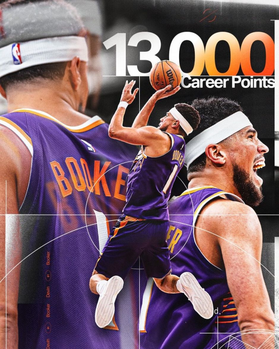 布克通过罚球得到本场个人第5分,生涯总分解锁13000分里程碑!