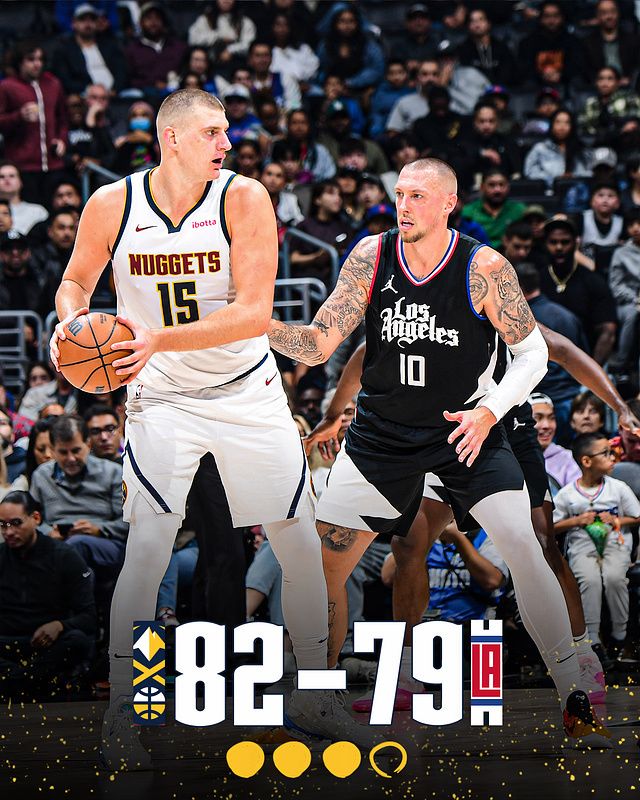 末节双方继续鏖战,约基奇被限制威力依然是疯狂打铁,快船四巨头给力表现,外加鲍威尔与泰斯也表现不俗,快船用团队攻势压制掘金反超比分。最后还剩不到1分半钟,掘金已经落后快船6分,约基奇的进攻直接被祖巴茨大帽扇掉。祖巴茨还抢到篮板迫使约基奇犯规两罚全中,快船继续扩大领先优势,哈登也继续罚球扩大两位数优势,约基奇最终无力回天率队翻盘,他也是缔造生涯最多打铁纪录,未能阻挡掘金赛季首次输给快船。
