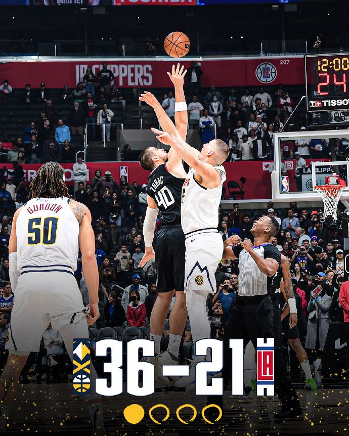 如今双方迎来赛季第3次交锋,约基奇首节轻松碾压祖巴茨统治内线,他携手小波特里外开花,率领掘金单节36-21领先快船多达15分优势。奈何,掘金次节攻防两端堪称“崩盘”表现,他们无法阻挡快船四巨头率队的团队攻势,竟然单节21-40狂输19分,上半场已经57-61被快船反超4分。