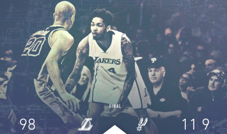 24直播网网 2月27日讯 在今天的比赛中,湖人主场以98-119不敌来访的马刺,遭遇四连败。