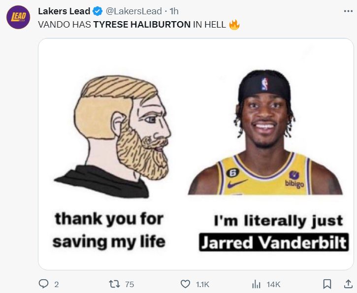 湖人媒体调侃:范德比尔特将哈利伯顿锁在地狱里。