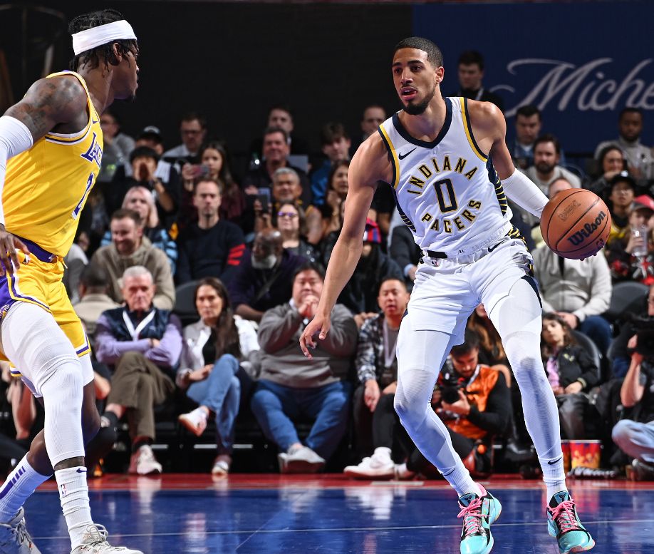 刚刚开场3分钟哈利伯顿就出现了两次失误,他控制失误的纪录就这样被湖人中断了,湖人季中赛防守效率102.3联盟第一,哈利伯顿面对湖人身高臂长的锋线很难轻松传球,他还在三分线外被范德比尔特大帽。