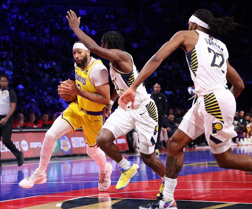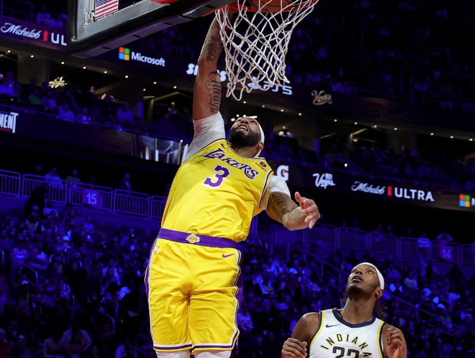 末节,浓眉在篮下防守的压力很大体能下滑,两个中投不中,篮下补篮得手,随后又大帽麦克康奈尔,浓眉前场篮板又造犯规两罚全中已经拿下30+,浓眉篮下再度暴扣,浓眉再度造犯规两罚全中,步行者痴迷三分连续打铁,浓眉篮下继续造犯规,詹姆斯助攻浓眉后拉开到16分,浓眉已经拿下39+20打停步行者。浓眉篮下暴扣后完成40+20,比赛走向完结。末节浓眉14分4篮板1盖帽。