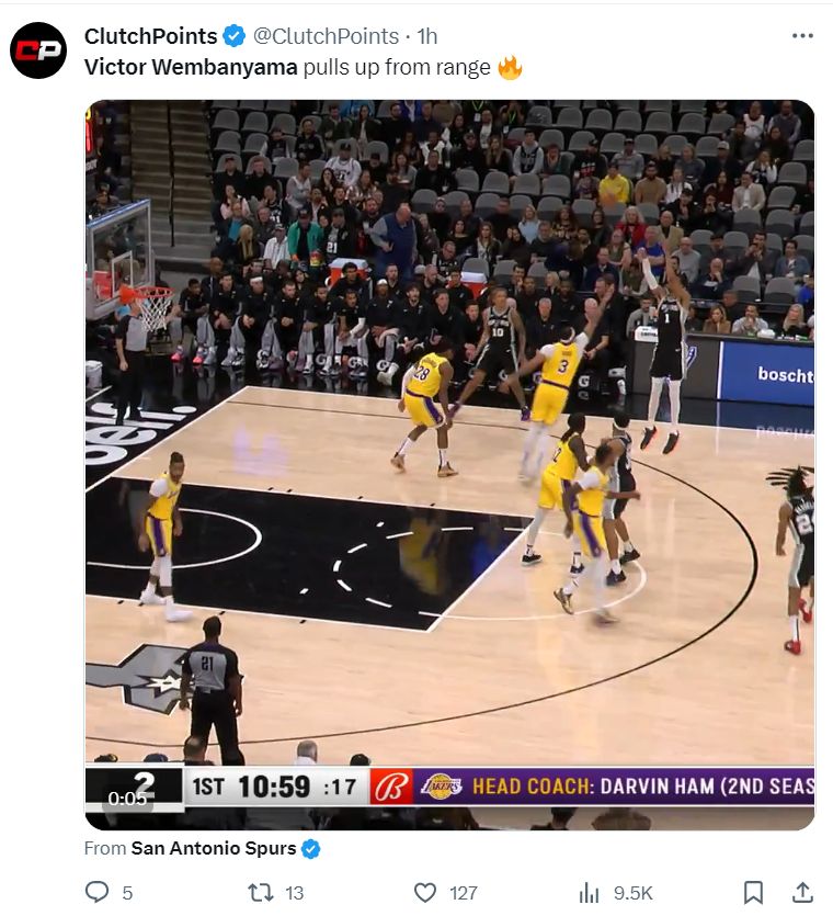 文班亚马还迎着安东尼-戴维斯的防守命中三分,上半场文班亚马12中5,三分3中2拿下12分5篮板1助攻1抢断4盖帽。