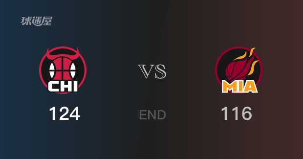 24直播网12月15日讯,2023-2024赛季NBA常规赛公牛vs热火,本场比赛由热火客场 挑战公牛,经过刺激对决,最终公牛反客为主,整体表现不错,以124-116战胜热火,怀特26分,哈克斯22分。