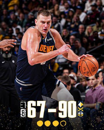 易边再战,约基奇第三节开启无解进攻模式轻松完虐篮网的防守,约基奇在第三节比赛打满全部12分钟。约基奇疯狂肆虐单节6中5,狂轰16分8篮板4助攻1抢断的无解数据,也是引领掘金单节38-28净胜10分,从而前三节掘金已经取得90-67领先23分巨大优势。