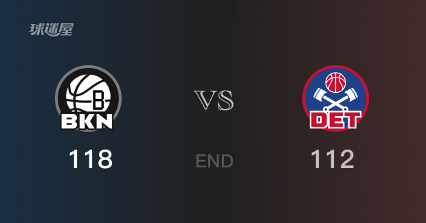 全场比赛,篮网球员K-约翰逊全场砍下24分;活塞球员康宁汉姆全场砍下41分。全场结束,篮网以118-112战胜活塞。