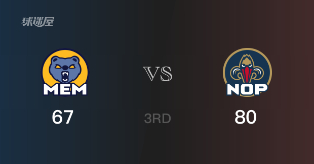 三节战罢,鹈鹕以80-67领先灰熊13分。