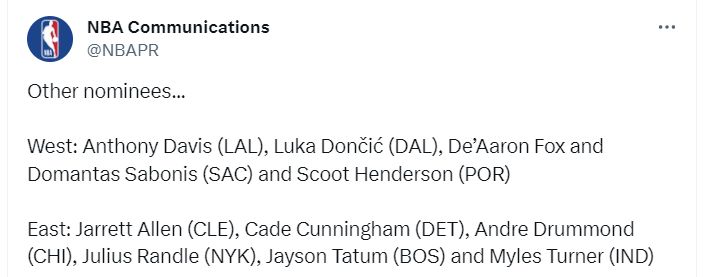 西部:浓眉、东契奇、福克斯和萨博尼斯、亨德森