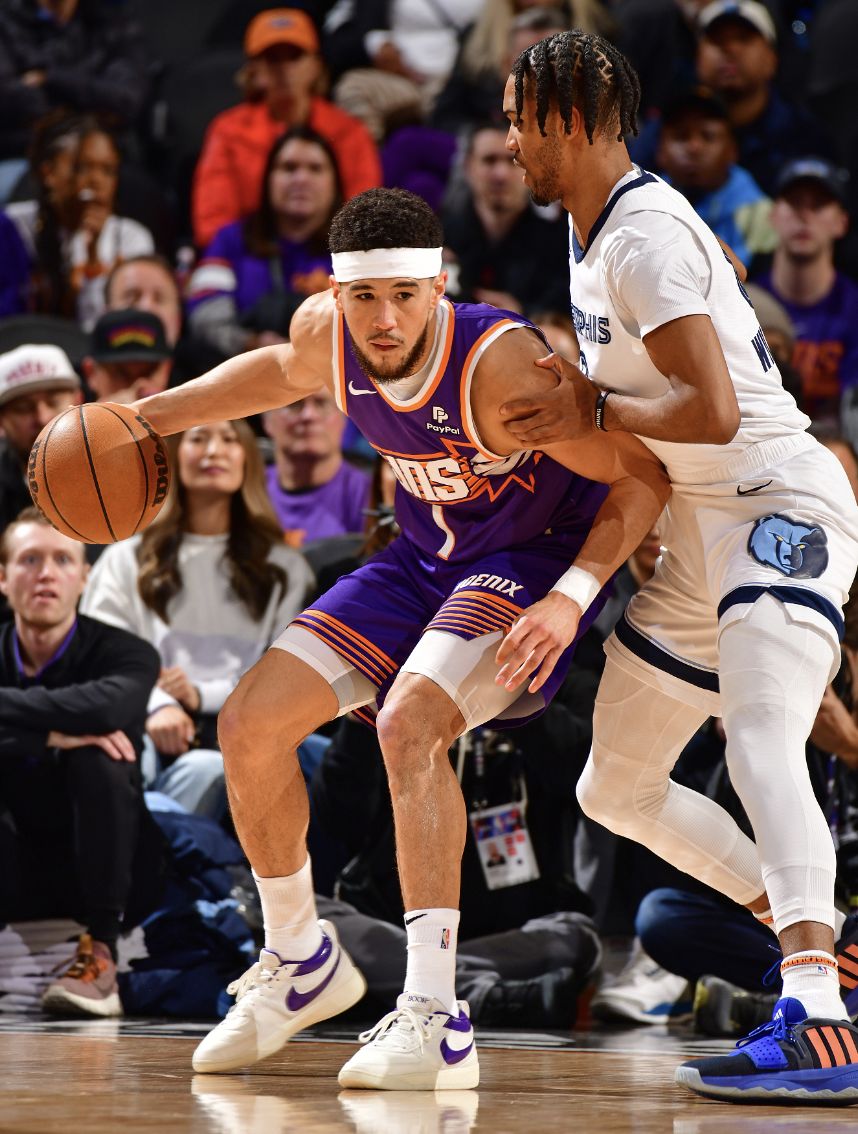 末节开场杜兰特带轮换打灰熊缩小到5分,杜兰特两个出手不中灰熊两个反击命中后已经完成反超,贝恩德反超三分价值千金,比尔突破不中努尔基奇补篮也不中,小贾伦持球突破后灰熊领先到3分,布克扳平三分不中,终场前18秒贝恩两罚全中反超到5分,布克终场前12秒造犯规