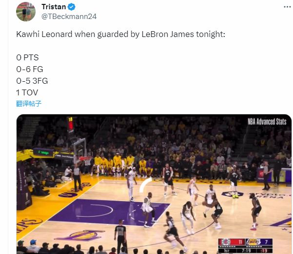 詹姆斯在防守端也展现了强悍一面。小卡此战17投6中,三分球7投2中,只得到15分8篮板2助攻3抢断2盖帽,进攻效率不高。其中,小卡面对詹姆斯的防守6投0中,三分球5中0,一分未得,还出现了一次失误。
