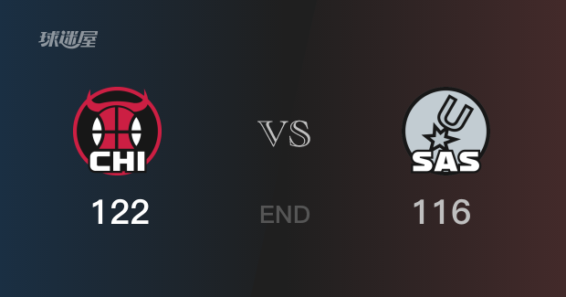全场比赛,公牛球员武切维奇砍下24分;马刺球员琼斯砍下30分。全场结束,公牛以122-116击败马刺。