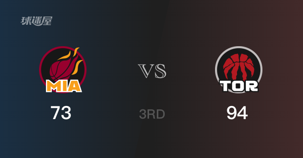 三节战罢,猛龙以94-73领先热火21分。