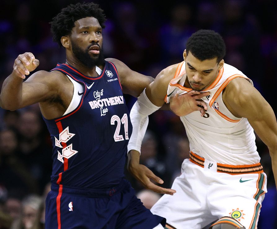 这场比赛是恩比德VS文班亚马的对决,恩比德原则意义上说也算是法国中锋,文班亚马也是法国中锋,法国德比关注度极高。首节恩比德就炸裂无比,单节12中8,罚球8中8,狂轰24分6篮板2助攻,进攻无死角。