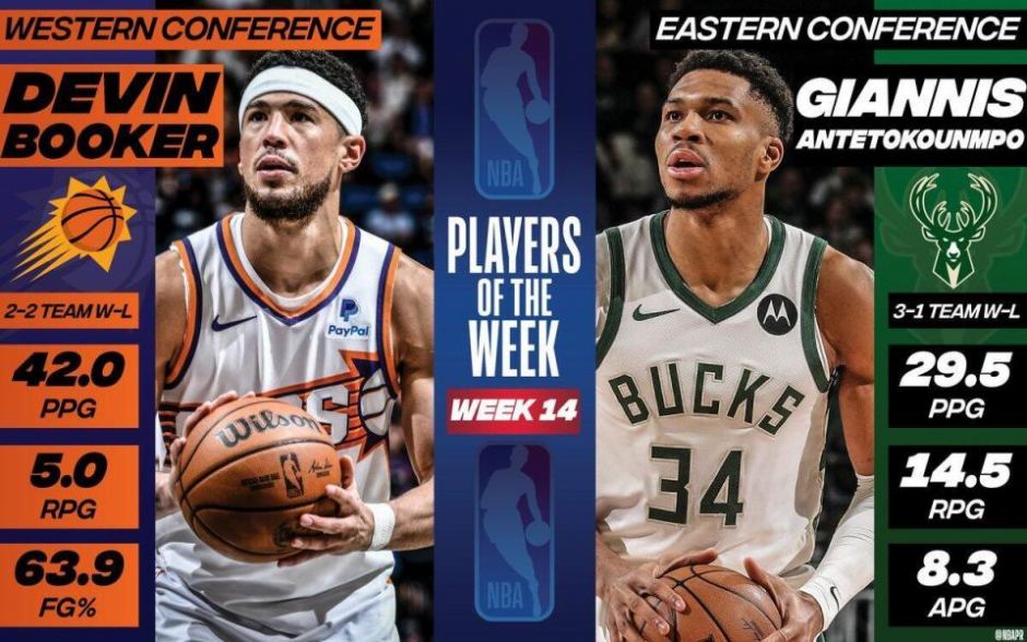 布克周最佳遭质疑!场均42分连续空砍仍获奖 字母哥当选拉塞尔获提名