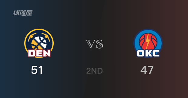 半场战罢,掘金以51-47领先雷霆4分。