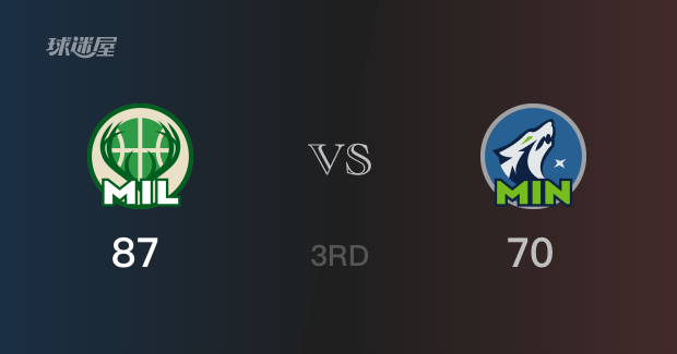 三节结束,雄鹿以87-70领先森林狼17分。
