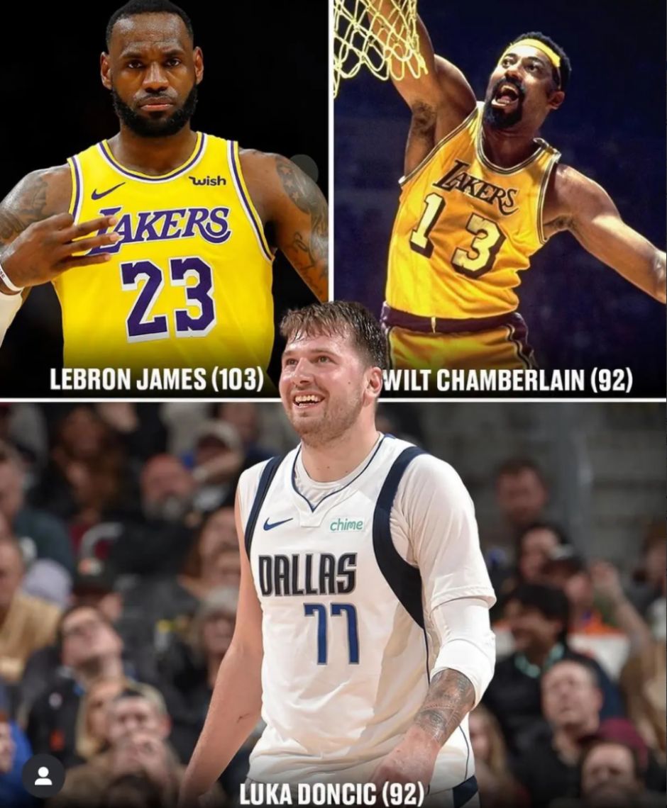 6.东契奇在25岁之前92次35+历史追平张伯伦仅次于詹姆斯,胖77也完成了自己的生日夜。