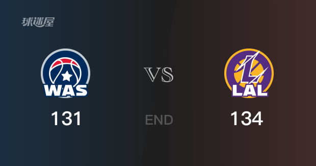 全场比赛结束,最终湖人以134-131击败奇才,成为获胜方。湖人球员戴维斯砍下全队最高40分,外加15篮板4助攻1抢断3盖帽、詹姆斯31分4篮板9助攻1抢断1盖帽、拉塞尔22分6篮板5助攻1抢断1盖帽,他们是湖人队里得分最高的三名球员。