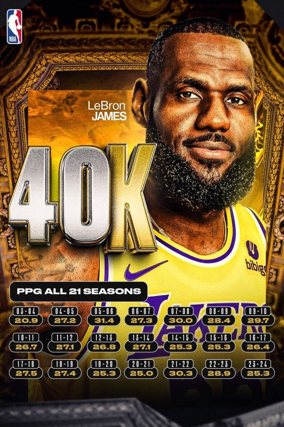 詹姆斯将迎来生涯第1476场常规赛,追平爵士名宿邮差卡尔-马龙的出场数,并列NBA历史出场数榜单第6位,而邮差马龙生涯最后一个赛季也曾经效力过湖人。