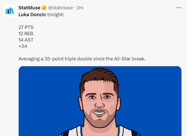 首节东契奇就拿下15+6+7的数据,三节还没打完已经拿下20分13助攻11篮板的三双数据。全美的媒体已经开始为东契奇欢呼雀跃。