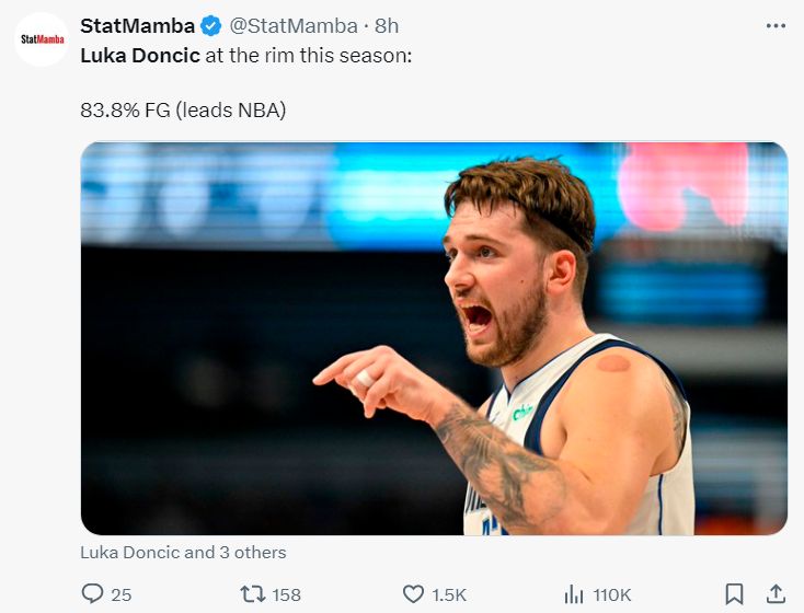 6.东契奇篮下命中率83.8%联盟第一;