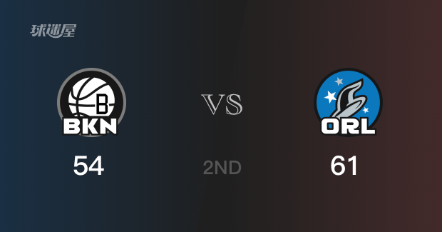 半场结束,魔术以61-54领先篮网7分。