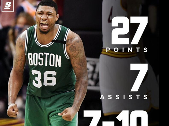 24直播网网 5月22日讯 凯尔特人今日在客场以111-108击败骑士,将总比分扳为1-2。凯尔特人球员马库斯-斯马特本场比赛命中了7个三分。