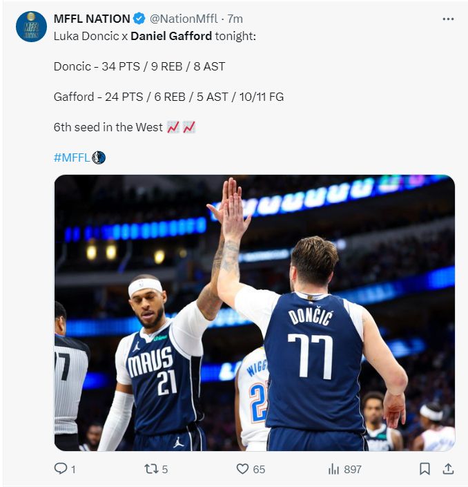 独行侠记者凯文-加里写道:独行侠完成三连胜后已经升至西部第六,单场18次暴扣是队史纪录,这18次暴扣有10次来自于丹尼尔-加福德。