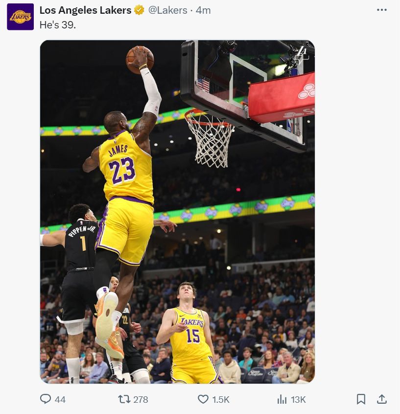 北京时间3月28日,洛杉矶湖人客场击败孟菲斯灰熊拿下五连胜,这场比赛后湖人距离西部第八的太阳只剩1.5个胜场。此役安东尼-戴维斯轮休,勒布朗-詹姆斯复出,老詹休息了一场后脚踝的感觉好了不少,开场就连续冲框,39岁的老球王还是霸气十足帮助球队拿下胜利。