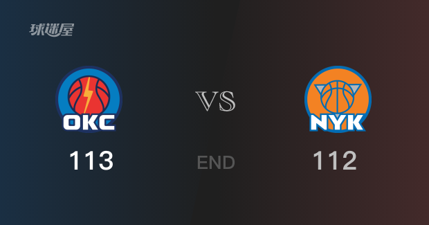 全场比赛,雷霆球员J-威廉姆斯砍下28分;尼克斯球员布伦森砍下22分。全场结束,雷霆以113-112击败尼克斯。